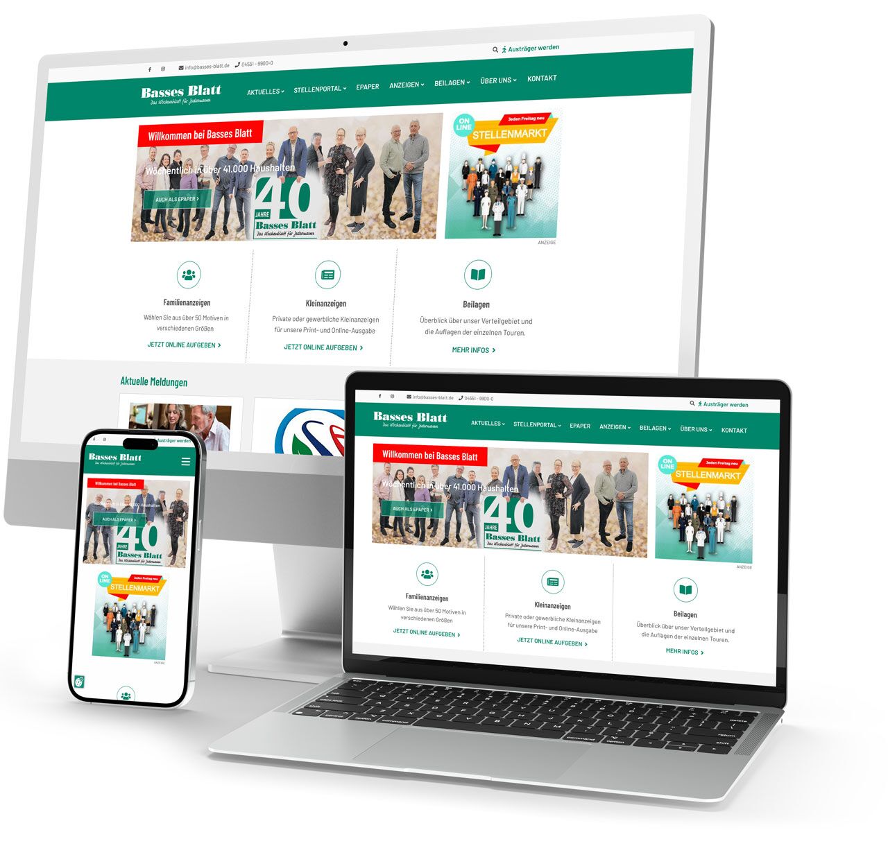 Mit einer Auflage von über 42.000 Exemplaren zählt Basses Blatt zu den größten Anzeigenblättern im Kreis Segeberg. Für ihre barrierefreie Onlinepräsenz hat sich das Verlagshaus bewusst für das CMS Contao entschieden. Besonders überzeugend waren die flexiblen Einstellungsmöglichkeiten für Benutzerrechte, die speziell auf die Bedürfnisse von Redakteuren und Verlagsmitarbeitern zugeschnitten sind.