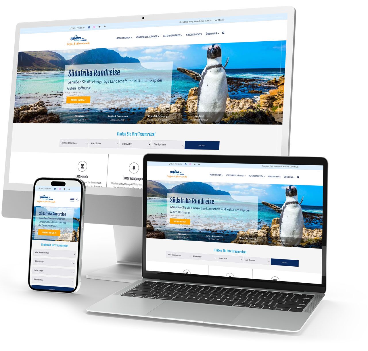 Als einer der größten Spezialisten für Singlereisen gehört der Hamburger Reiseveranstalter zu den führenden Anbietern in diesem Segment. Wir durften nicht nur die Konzeption und die barrierefreie Umsetzung der Website übernehmen, sondern auch die Schnittstellenprogrammierung zwischen der eingesetzten Ratio-Software und Contao realisieren.